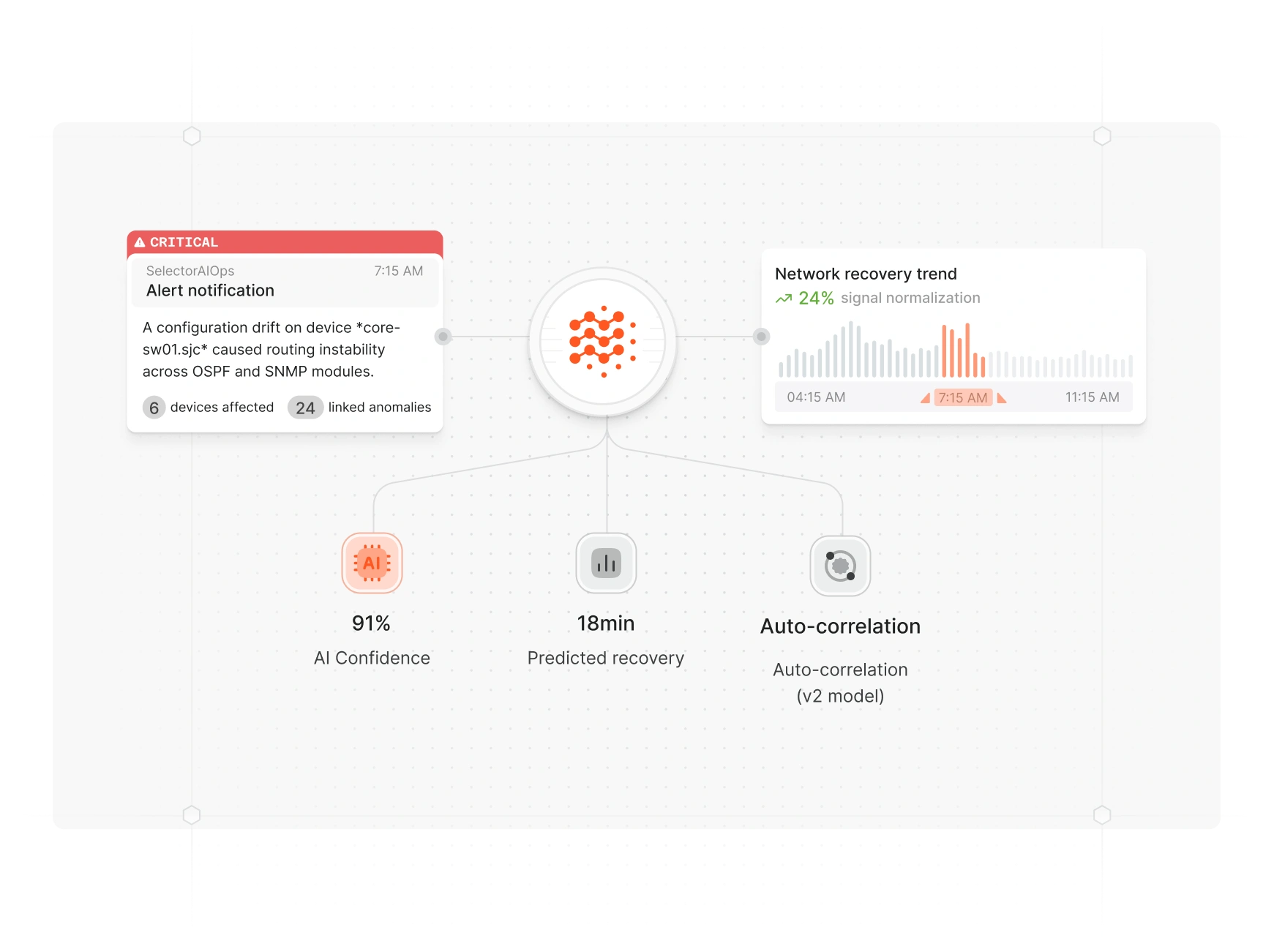 Today’s hybrid networks move faster than humans can monitor. Dashboards multiply, alerts flood in, and teams lose context. Selector changes that, using AI to understand your operations, not just observe them.