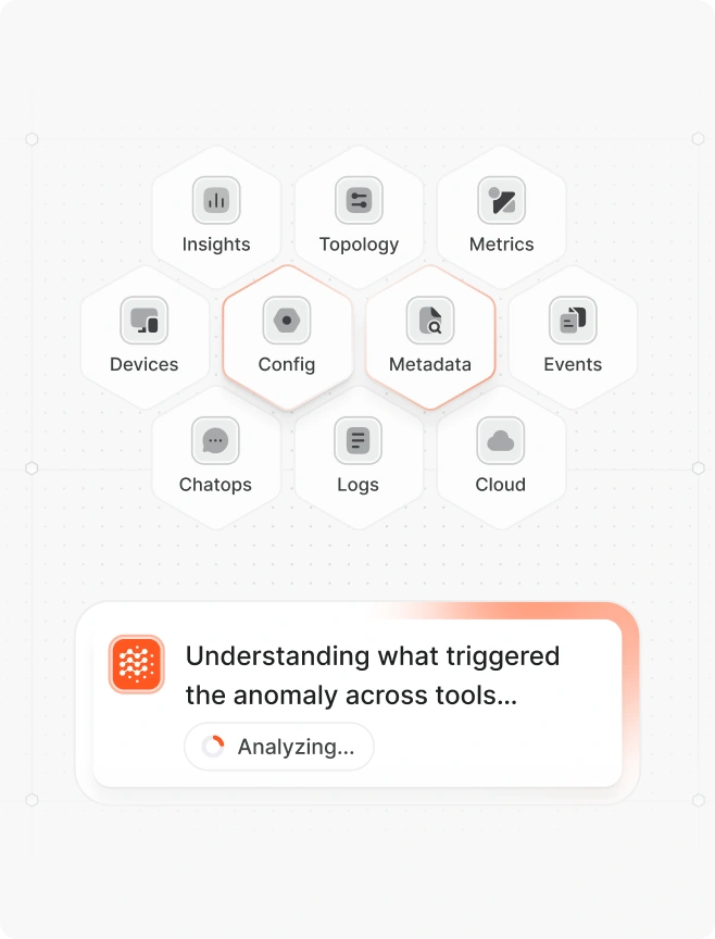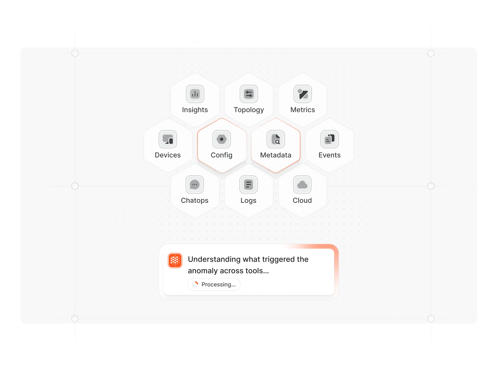 Connect logs, metrics, configs, and topology from over 300 data sources. Selector unifies your data into a single model that powers AI reasoning, visualization, and insights.